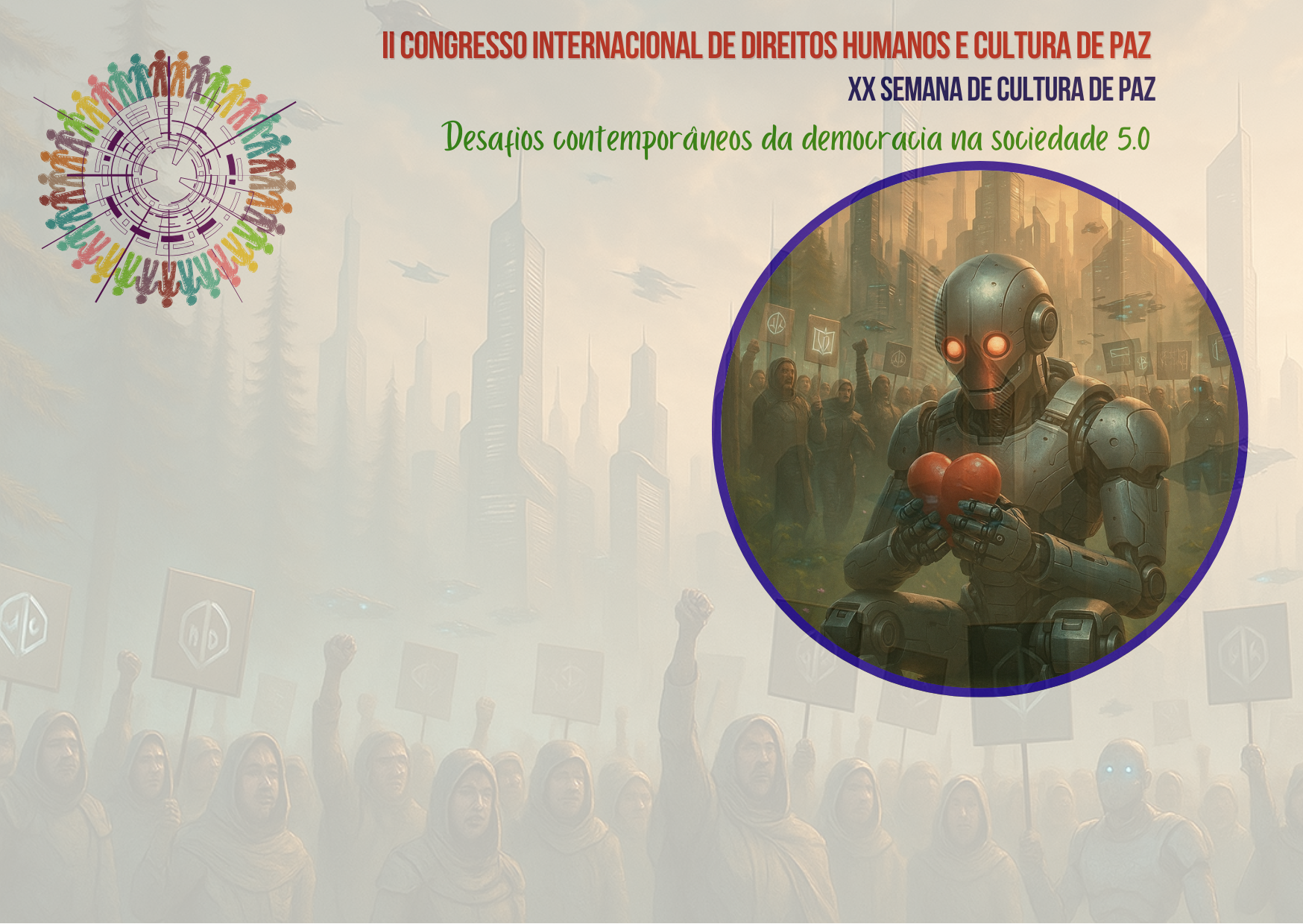 O II Congresso Internacional de Direitos Humanos e Cultura de Paz acontece simultaneamente com a XX Semana de Cultura de Paz, na Universidade Federal de Pernambuco (UFPE). Ambos os eventos exploram o tema "Desafios Contemporâneos da Democracia na Sociedade 5.0".