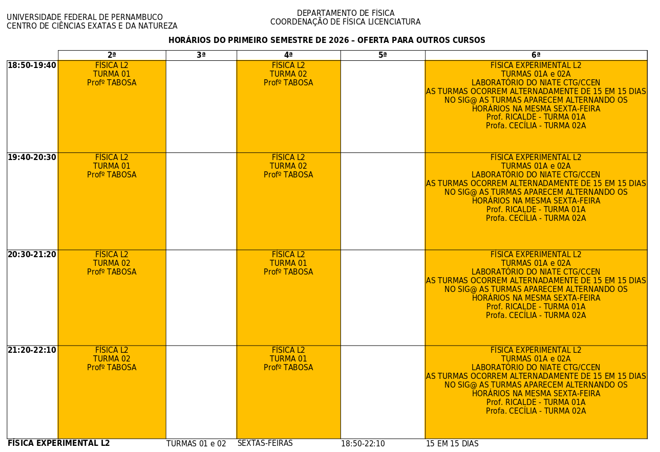 - O curso de Licenciatura em Física oferta no primeiro semestre de cada ano as disciplinas dos semestres ímpares;
