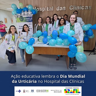 O Dia Mundial da Urticária foi lembrado com ação educativa na manhã de sexta-feira (29), no hall da Portaria 4 do Hospital das Clínicas da UFPE. Estudantes das Ligas Acadêmicas de Pediatria (Laped) e de Dermatologia (Laderma) da UFPE e as médicas da Área Assistencial de Alergia e Imunologia do hospital realizaram abordagem com o público para conscientização sobre a doença, que tem tratamento. O HC é uma unidade vinculada à Empresa Brasileira de Serviços Hospitalares (Ebserh).