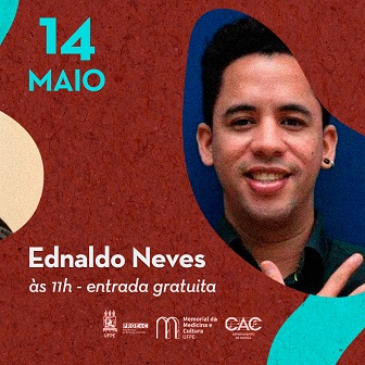 Nesta apresentação, o Memorial da Medicina e Cultura recebe o recital de Ednaldo Neves, no domingo (14). O recital acontece na sala Bandeira & Aguiar, no Memorial da Medicina e Cultura (Rua Amauri de Medeiros, 206 - Derby), que conta com 130 lugares. Os ingressos, gratuitos, serão disponibilizados 30 minutos antes do espetáculo. A programação segue até o mês de dezembro.
